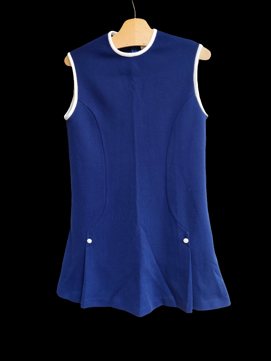 This navy and white modette style dress is great. Its a lovely length and has the 60's style.