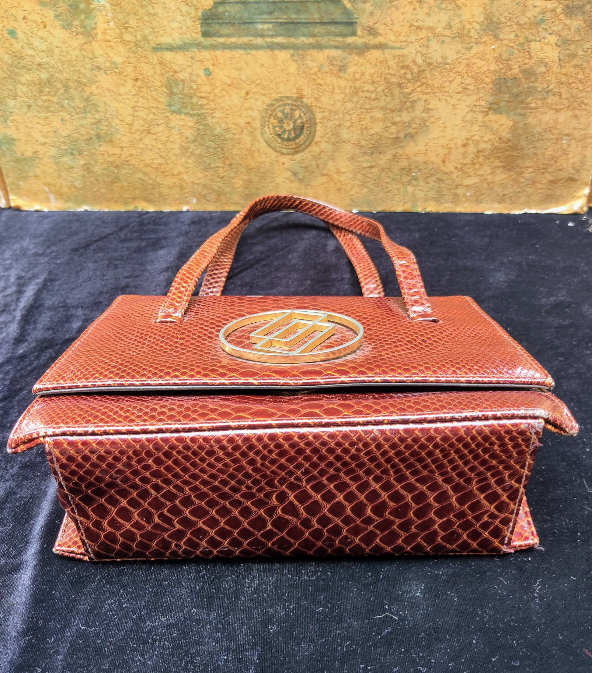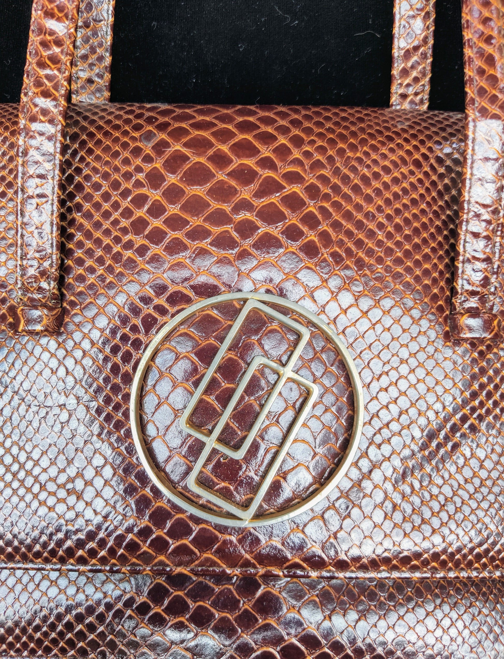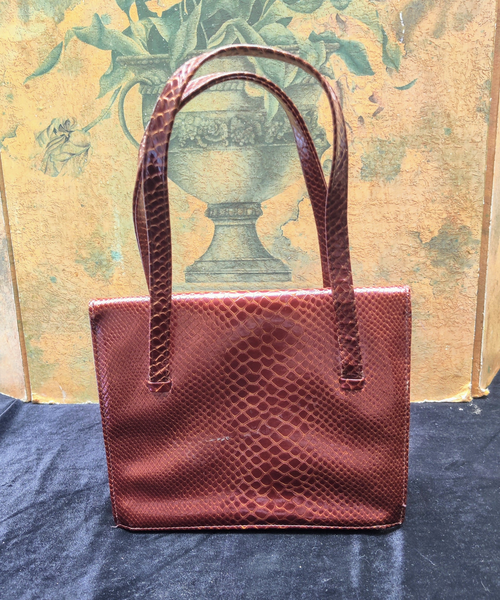 This leather bag is beautifully made. The mock croc outer is gorgeous and the metal hardware gives it a really unique twist. It is a beautifully rich brown tan colour.