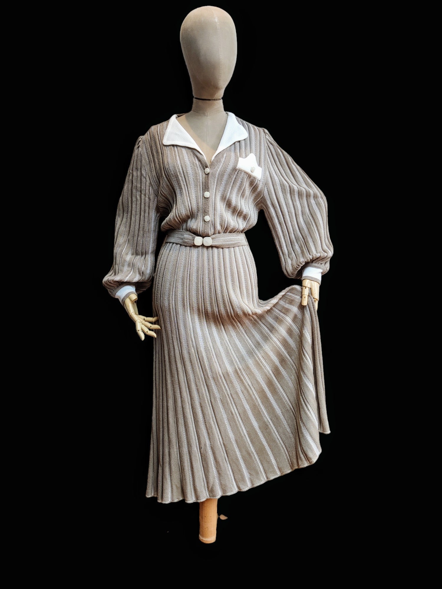 Beautiful vintage Tricoville knitted pleated midi dress. Size 12