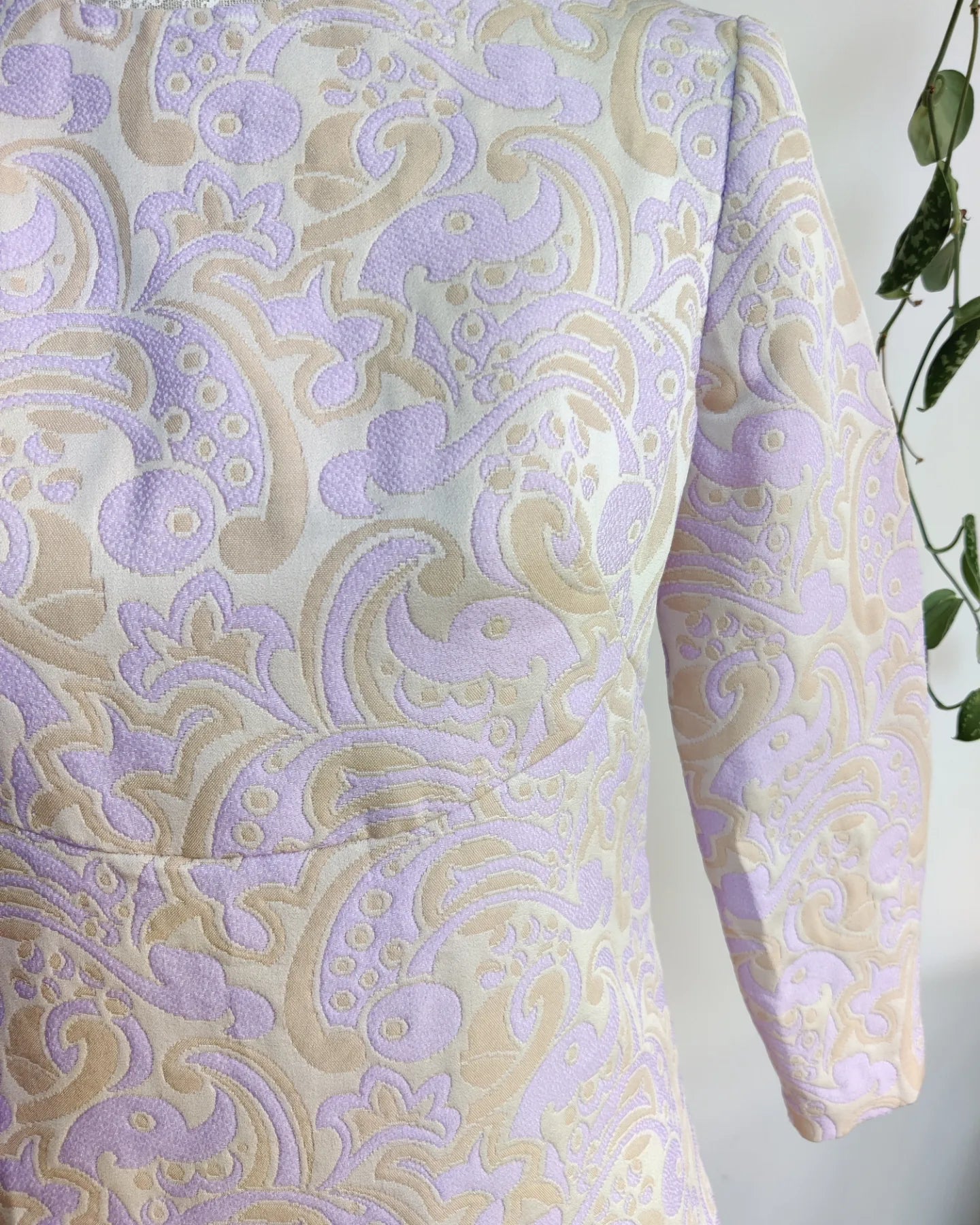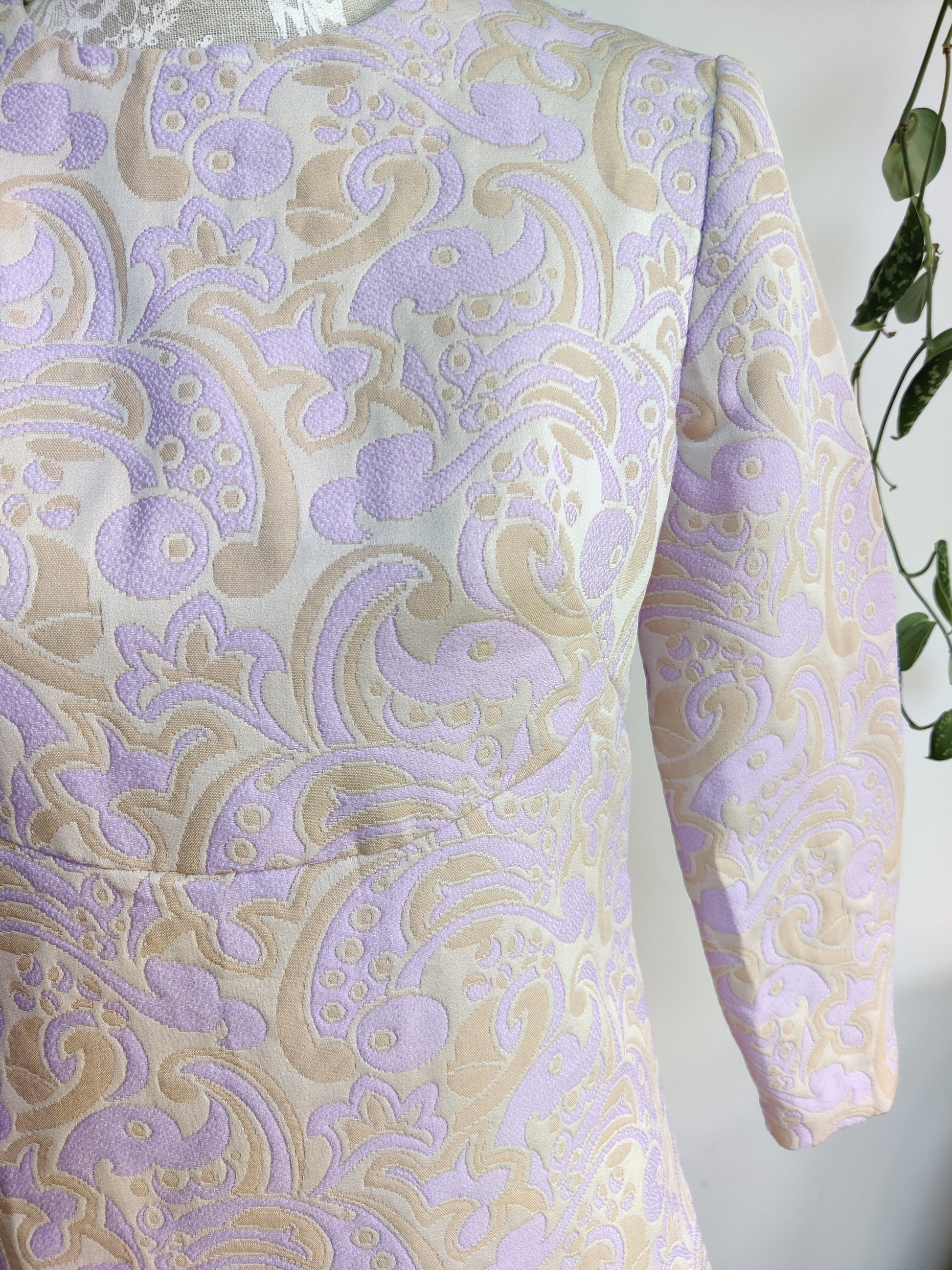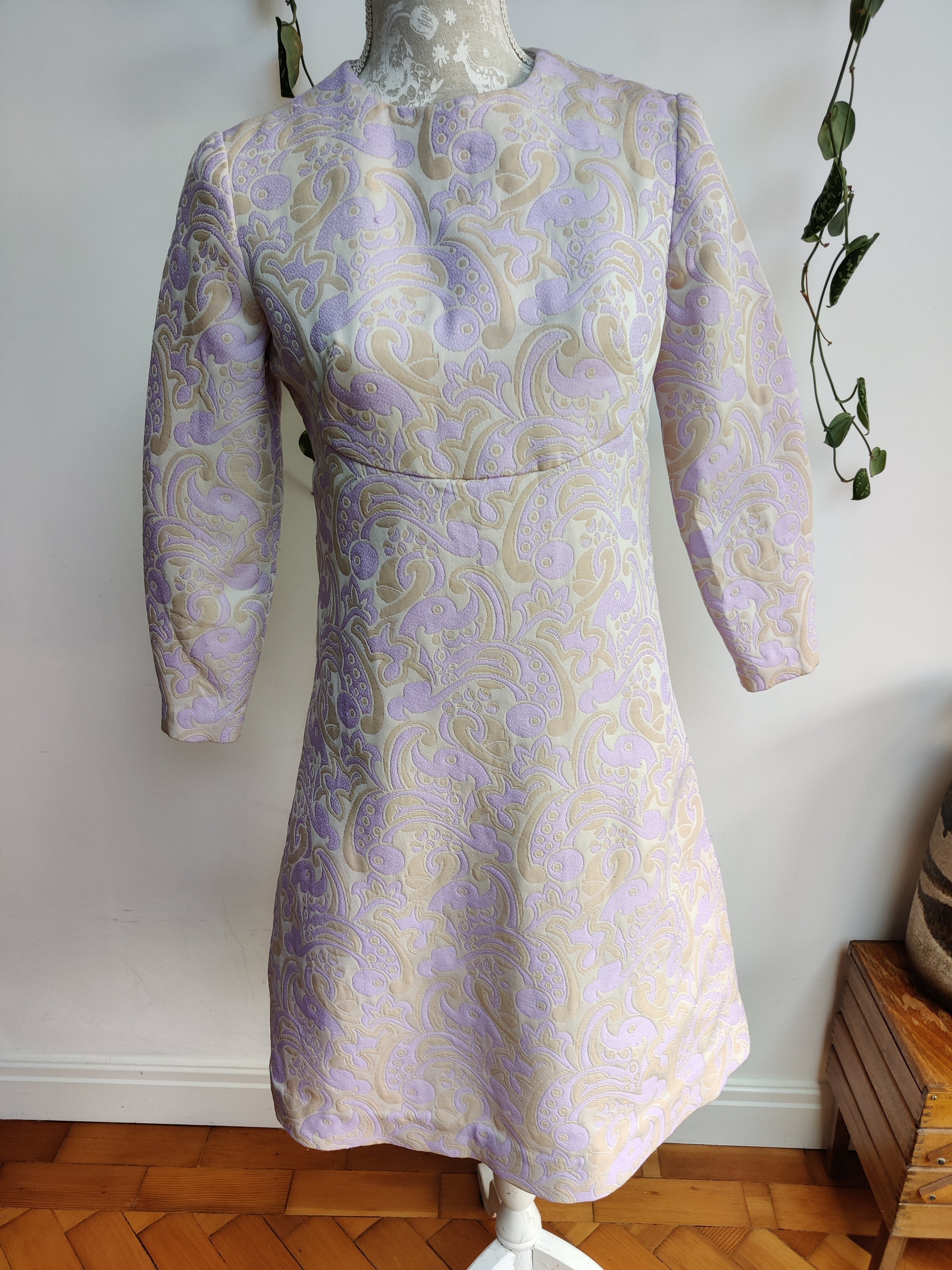 This incredible 60s mod dress in lilac is a must-have for any vintage fashion enthusiast. The size 10 dress is in very good condition with only a few minor pulls to the fabric. The colours and print are gorgeous and the photos don't do it justice.
