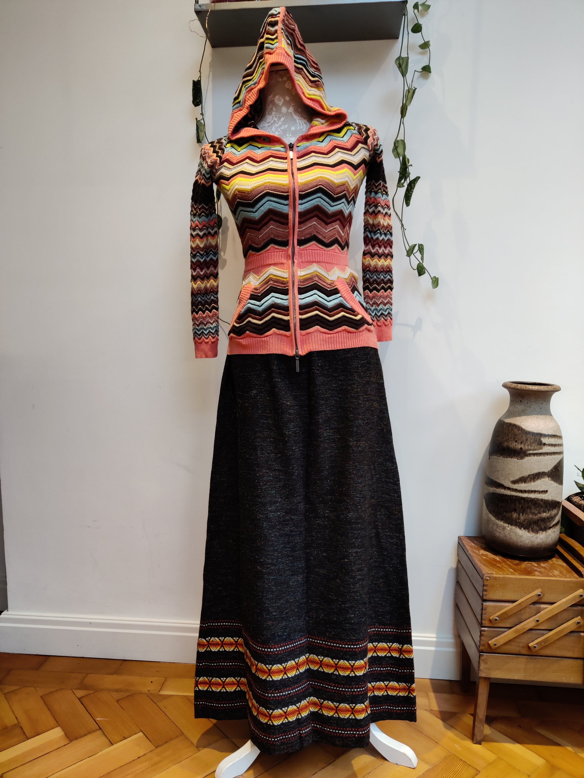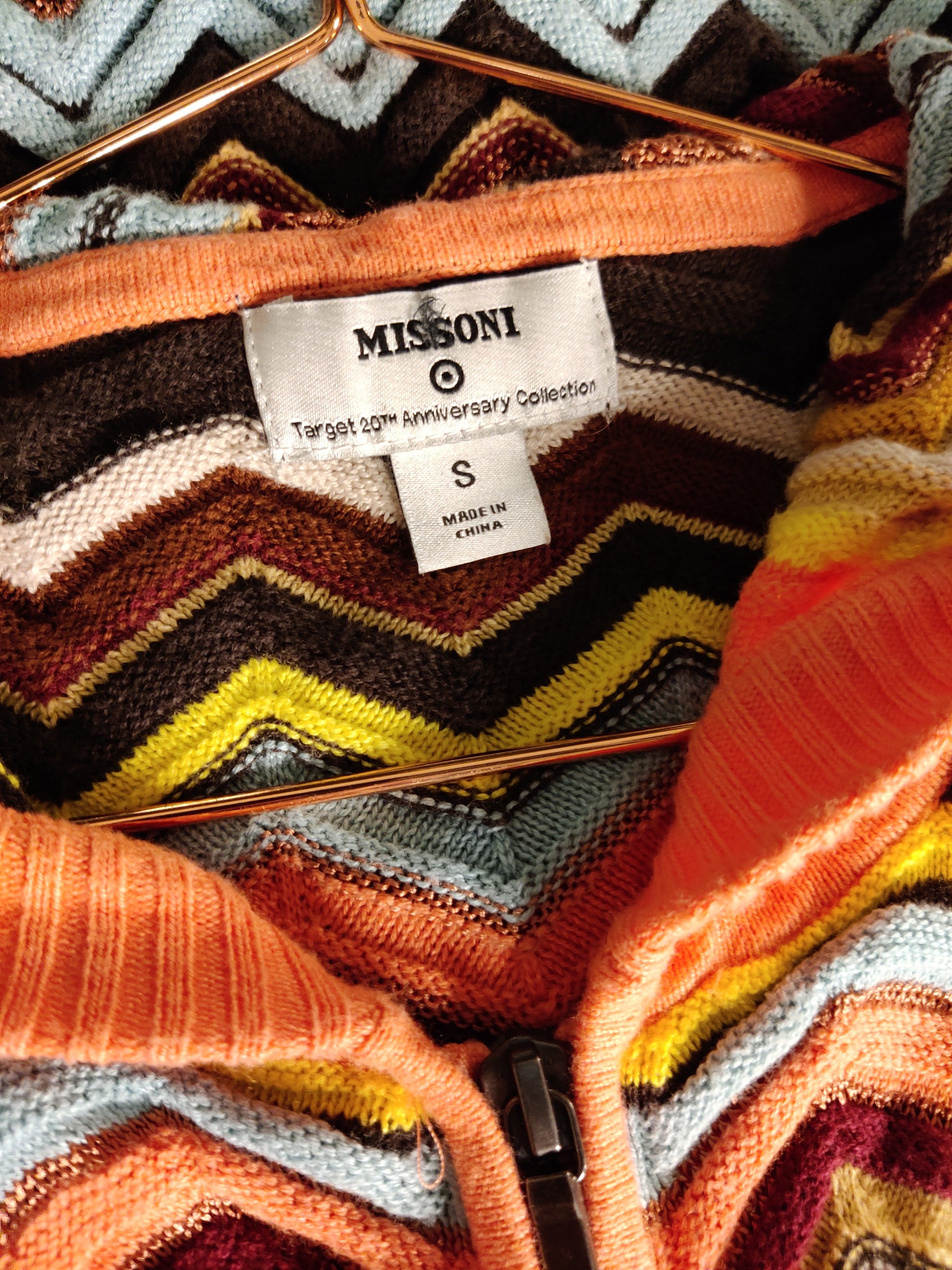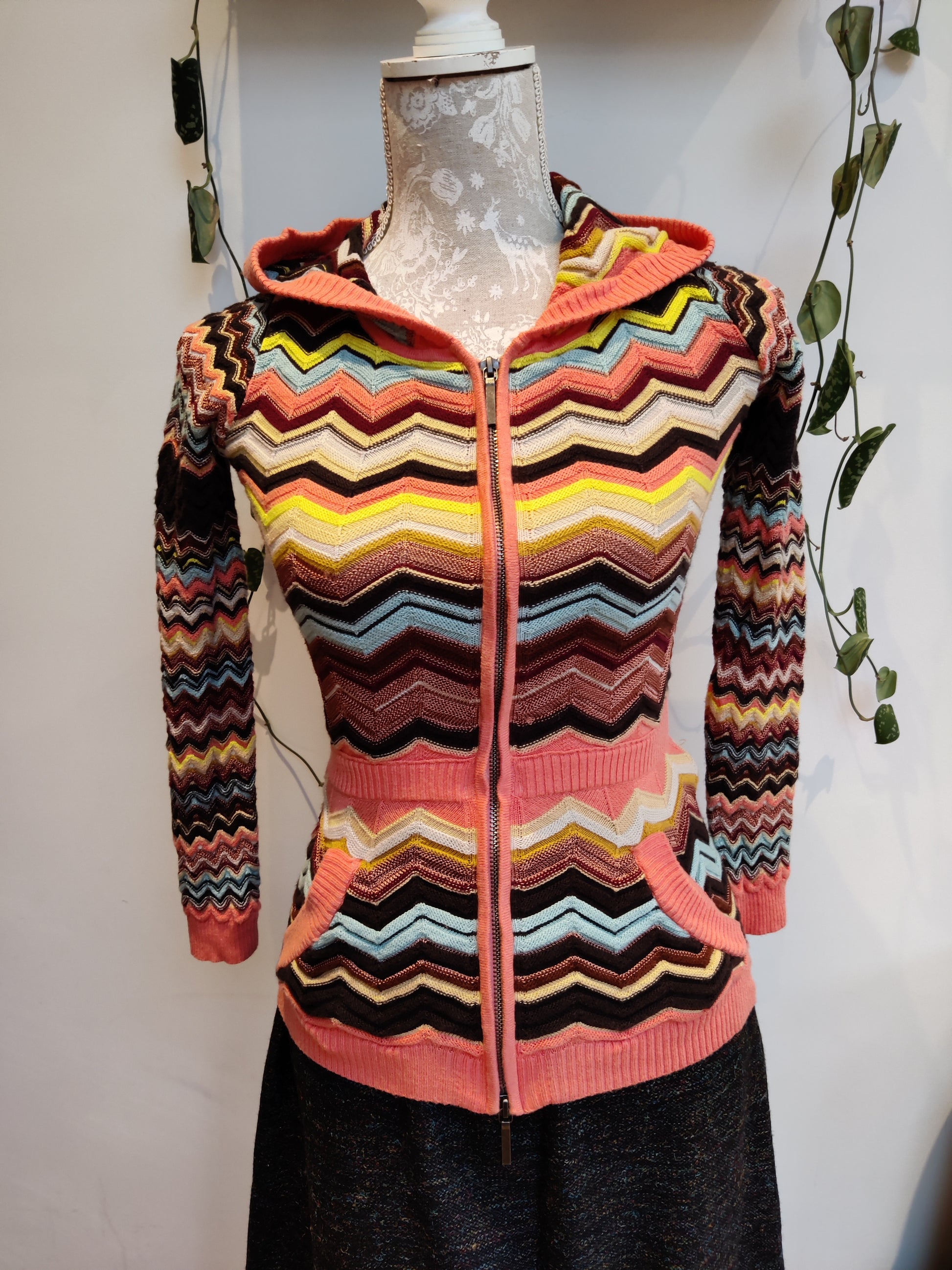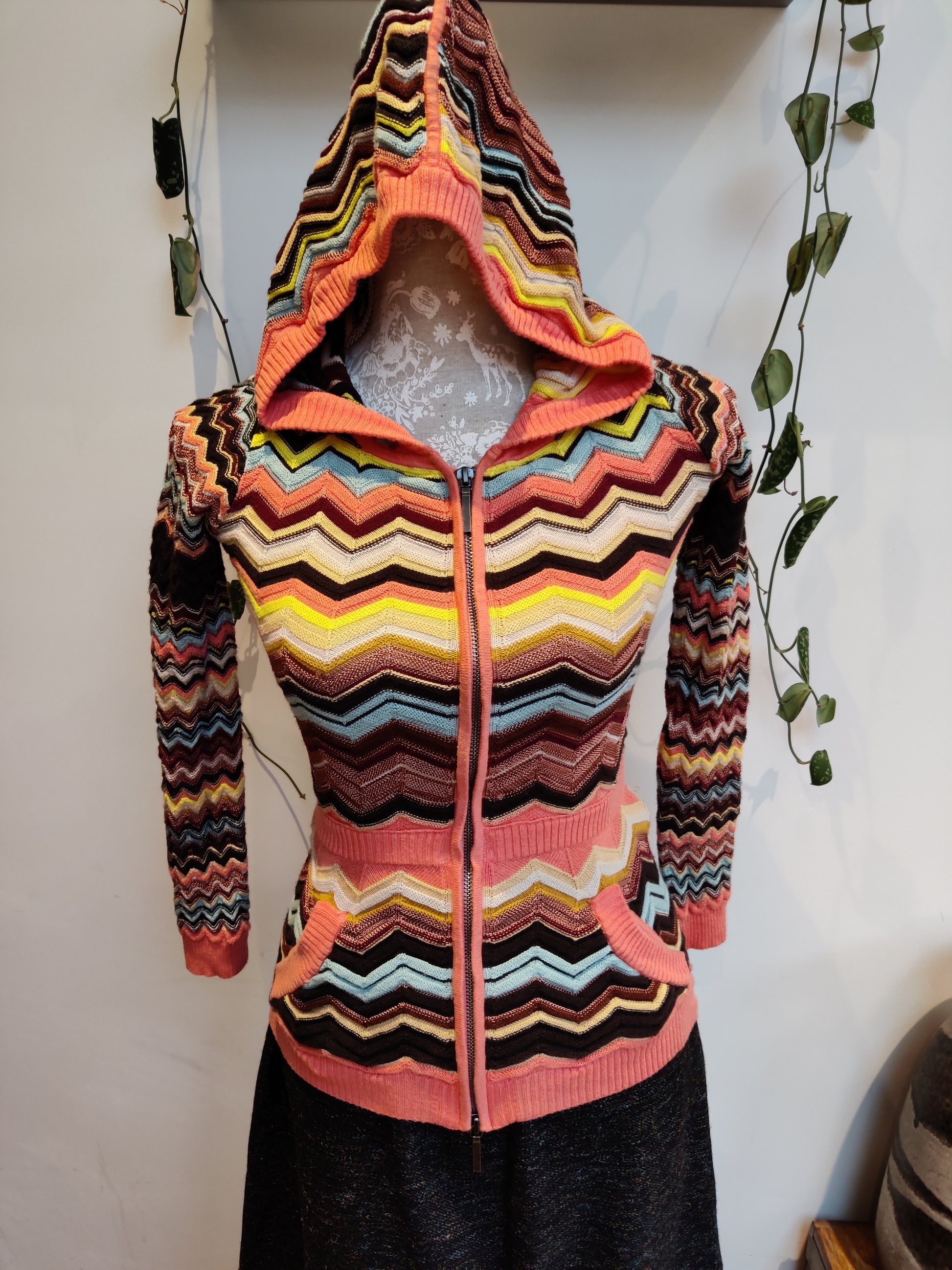 This Missoni hooded top is a limited edition range done for Target. It features the classic zig zag knit in stunning colours. The top is fitted and stretchy, with pockets, a zip to the front and a hood.