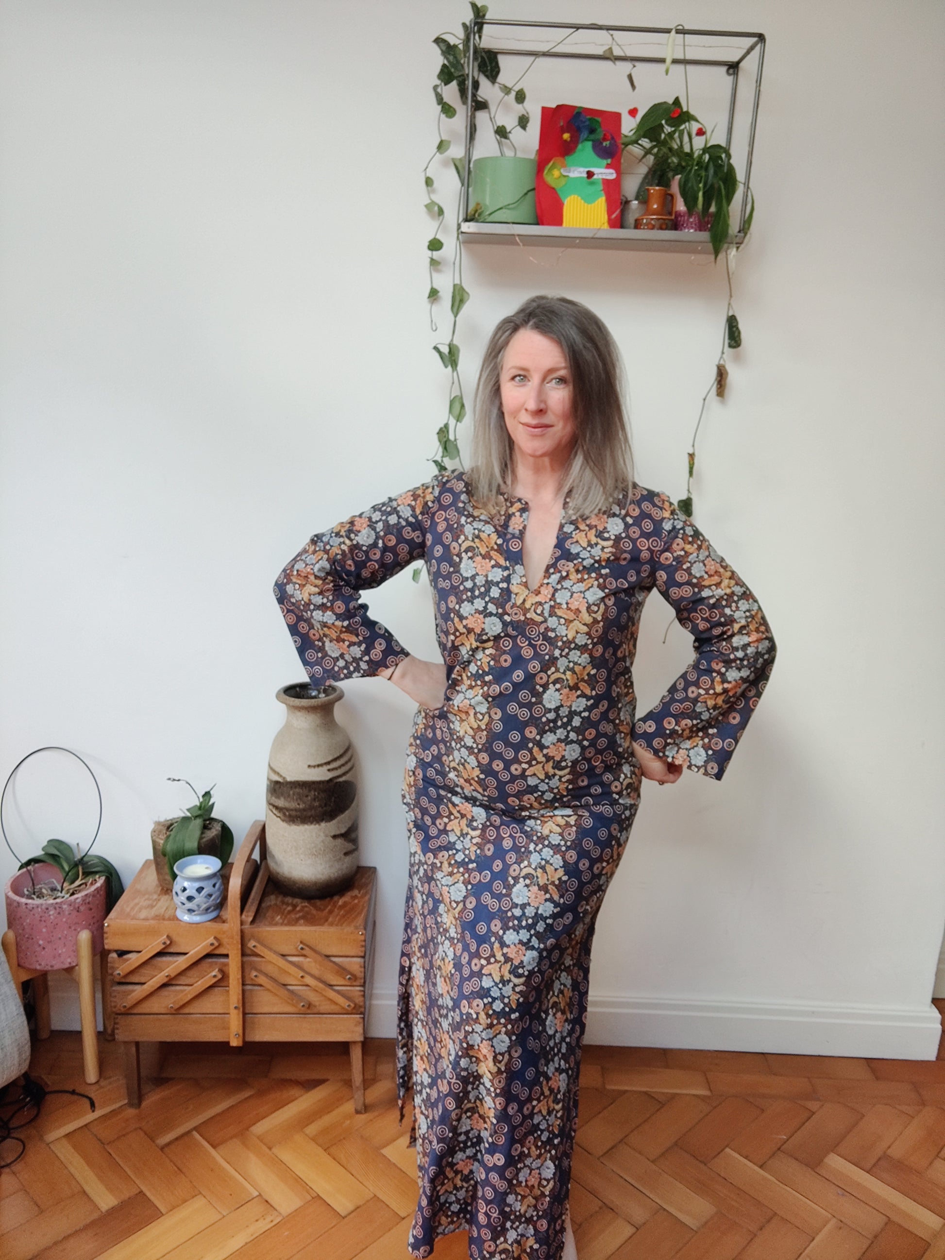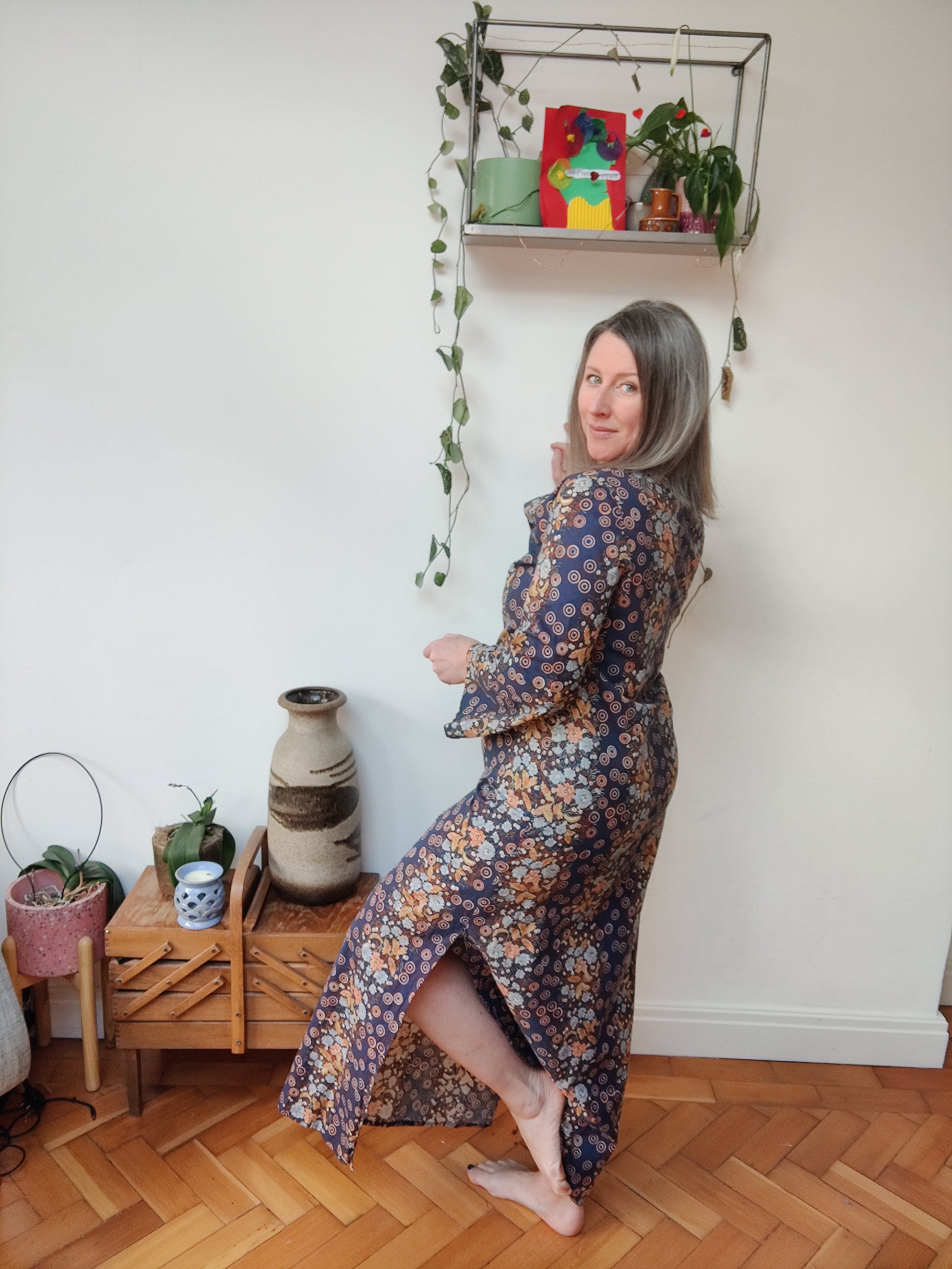 This 70s Kaftan is incredible. The navy floral print is lovely, and it has the best bell sleeves ever!